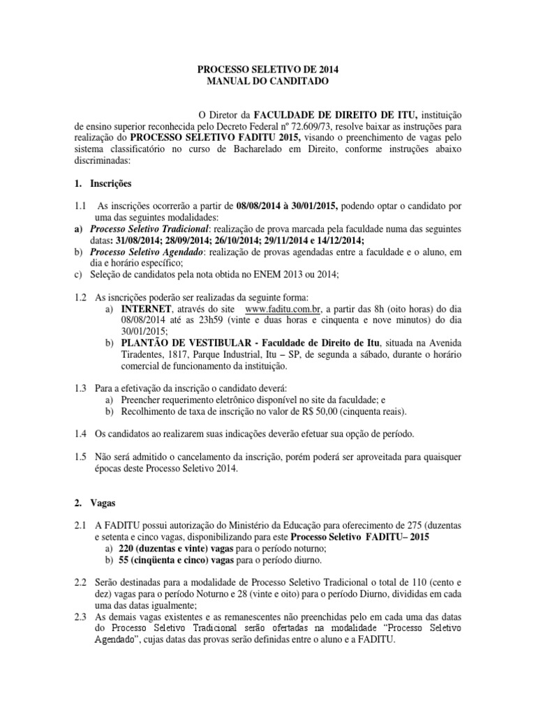 Processo Seletivo FADITU 2015.
