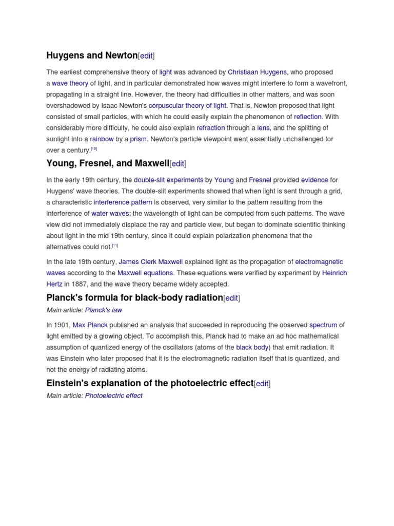Huygens' wave theories. The double-slit experiments showed that when light is sent through a grid,
