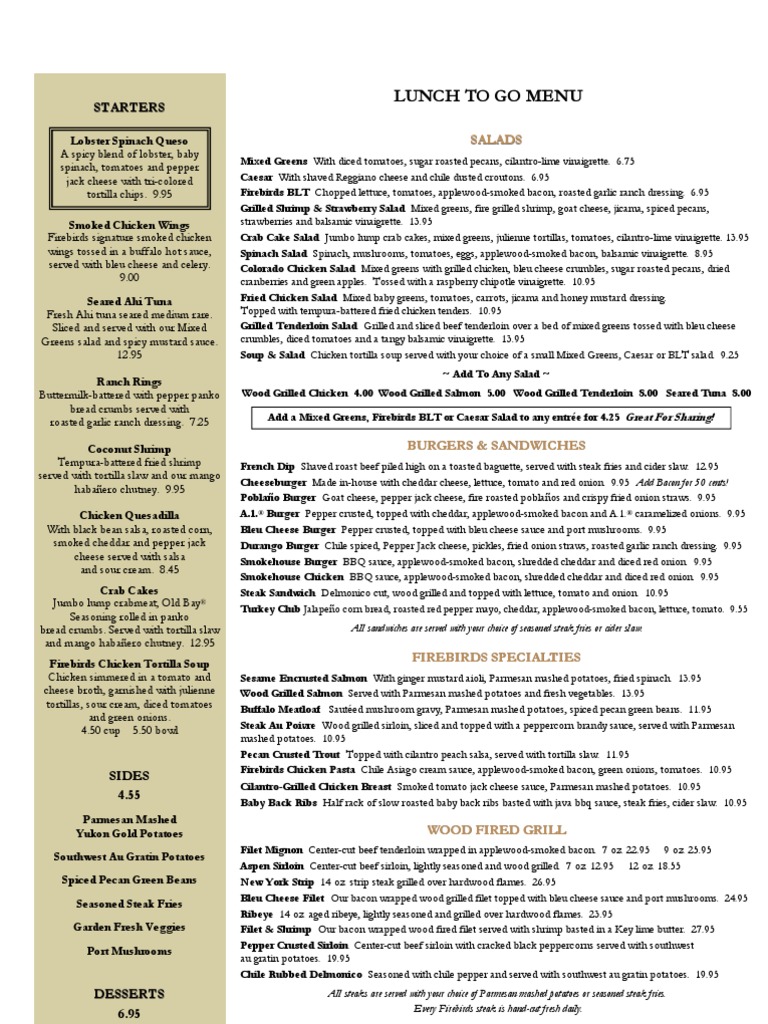 Ranch Rings Add a Mixed Greens, Firebirds BLT or Caesar Salad to any entrée for 4.25 Great For Sharing!