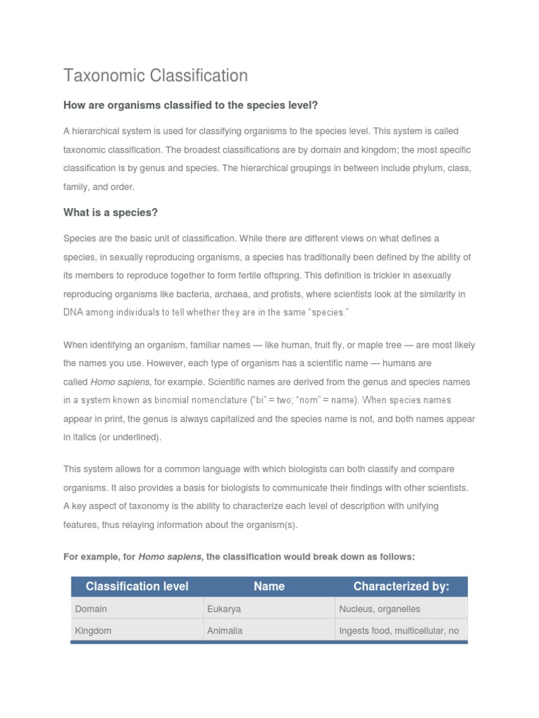 For example, for Homo sapiens, the classification would break down as follows: