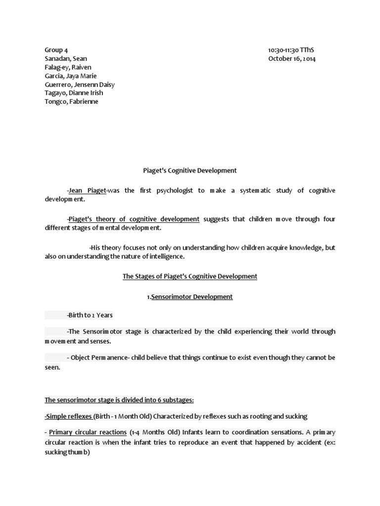 The Stages of Piagets Cognitive Development