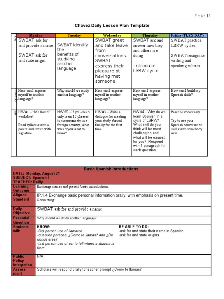 Homework HW #1 – Me llamo (worksheet: how would people like your mother, sister, etc. introduce