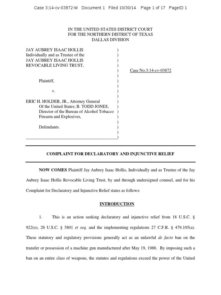 trusts from manufacturing or possessing machineguns and an accompanying order requiring the