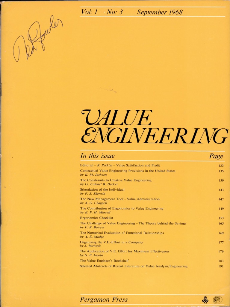 Value Engineering is published bi-monthly by Pergamon Press Ltd.