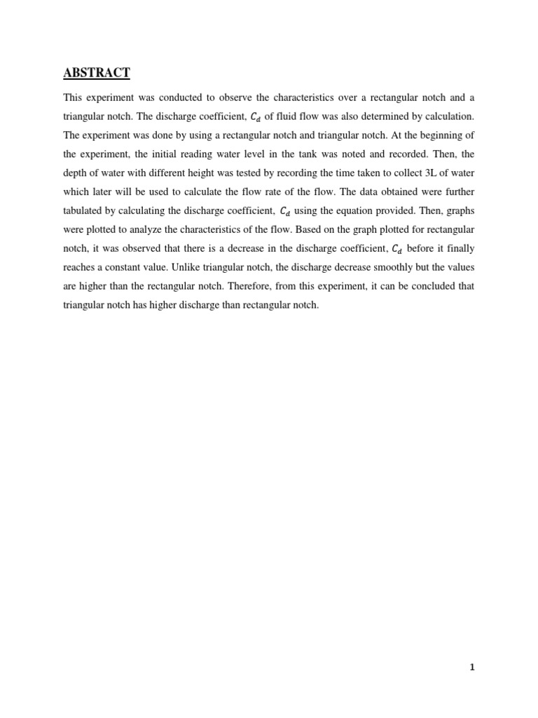 This experiment was conducted to observe the characteristics over a rectangular notch and a