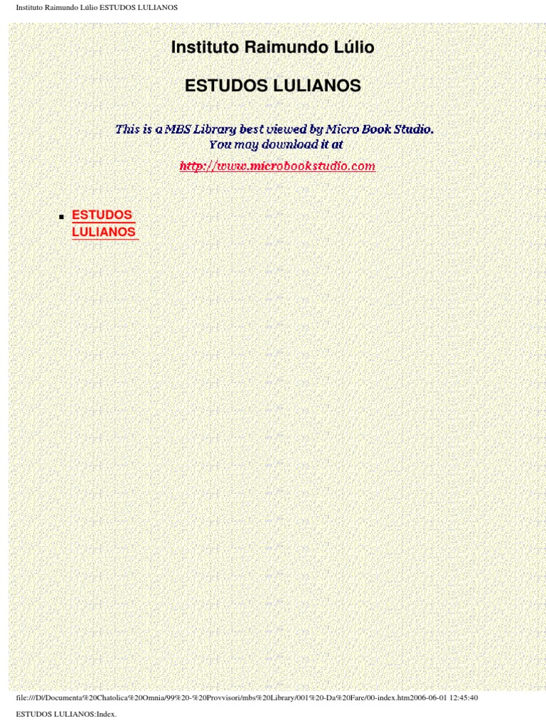 file:///D|/Documenta%20Chatolica%20Omnia/99%20-%20Pr...mbs%20Library/001%20-Da%20Fare/0-EstudosLulianos.htm (1 of 6)2006-06-01 12:45:40