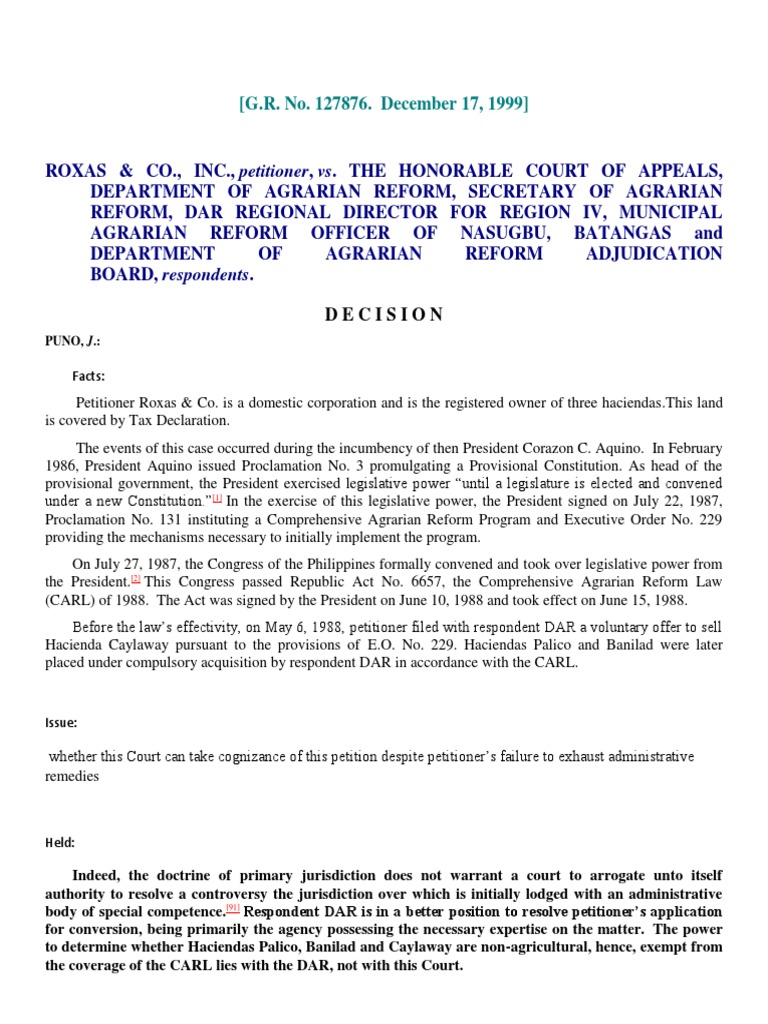 Petitioner Roxas & Co. is a domestic corporation and is the registered owner of three haciendas.This land