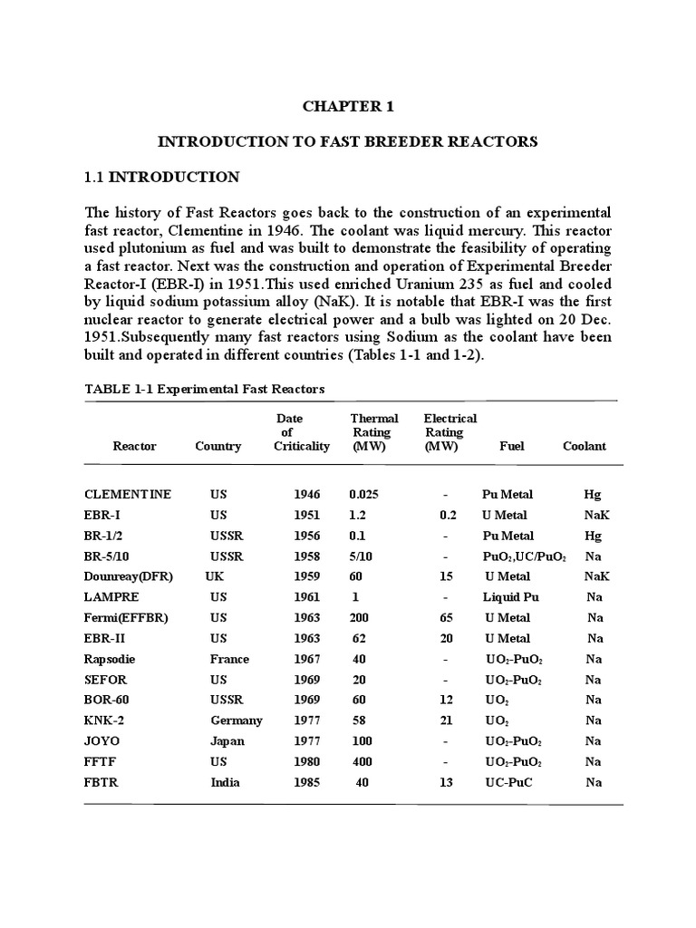 TABLE 1-1 Experimental Fast Reactors