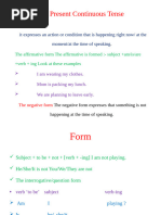 We use the present continuous tense to talk about what somebody is doing now, or about