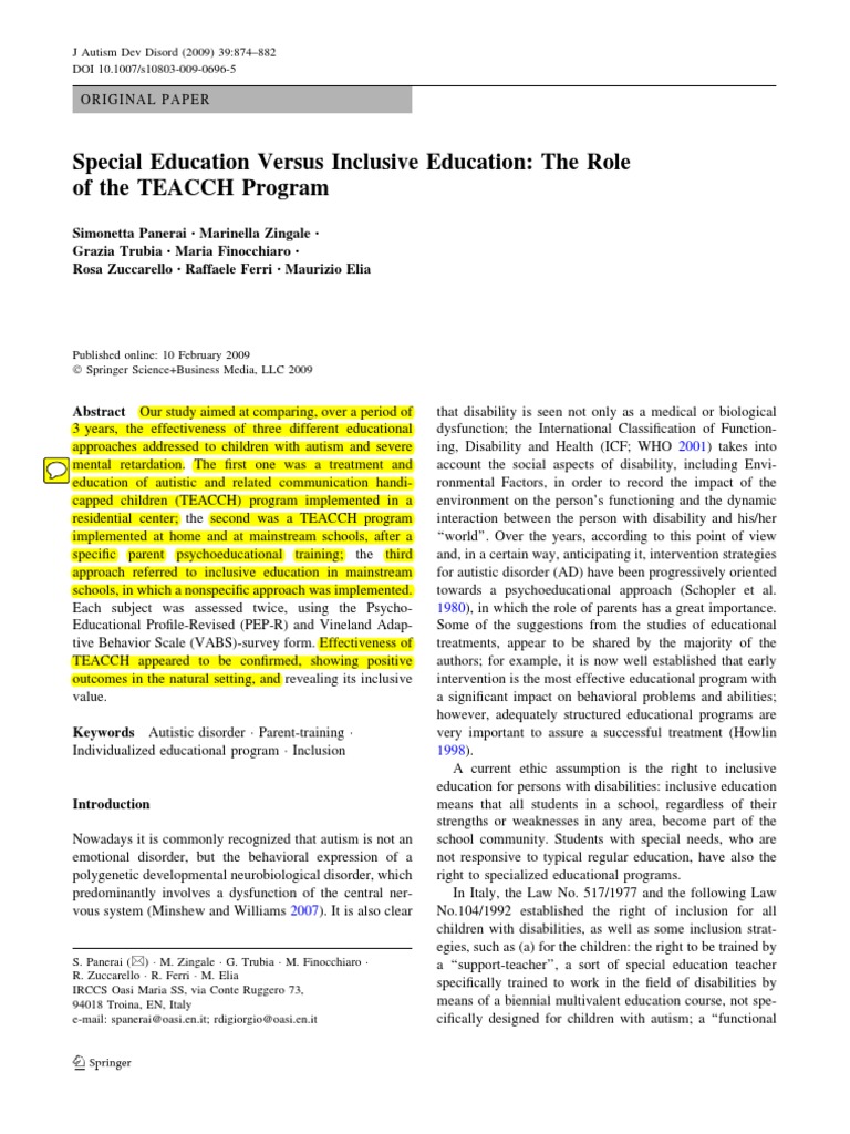 Ijichi, N., & Ijichi, S. (2006). TEACCH should be inclusive. Autism,
