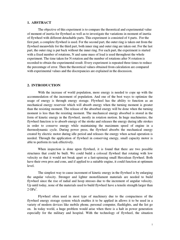 of moment of inertia for flywheel as well as to investigate the variations in moment of inertia