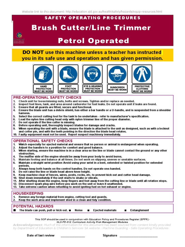 by Department of Education & Childrens Services SA website : Machine Guarding - Safe Operating Procedures.