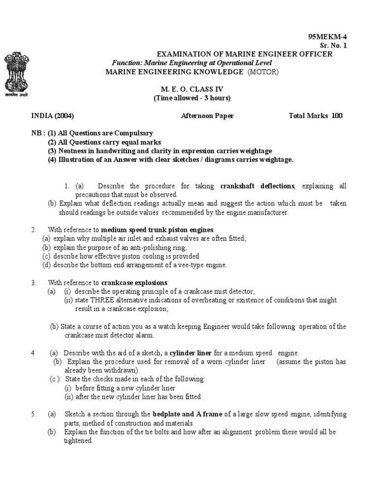 EXAMINATION OF MARINE ENGINEER OFFICER