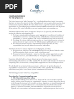 members of the Canterbury School community, including students, faculty and staff, the Board