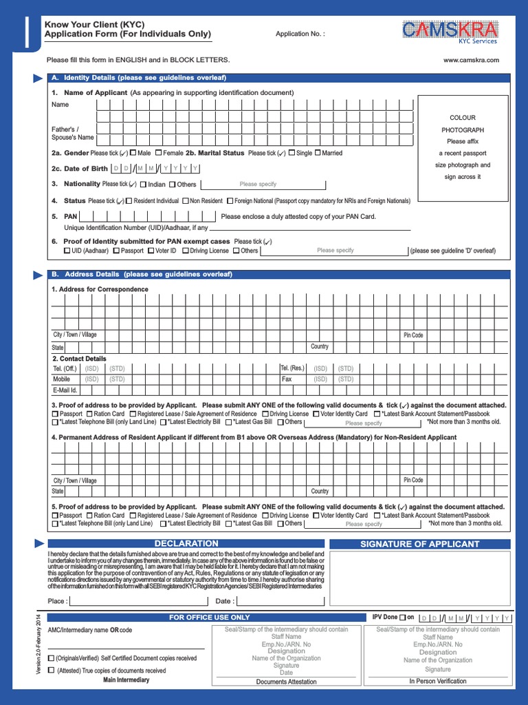 Please Print the KYC Application Form in A4 Size Paper Only.