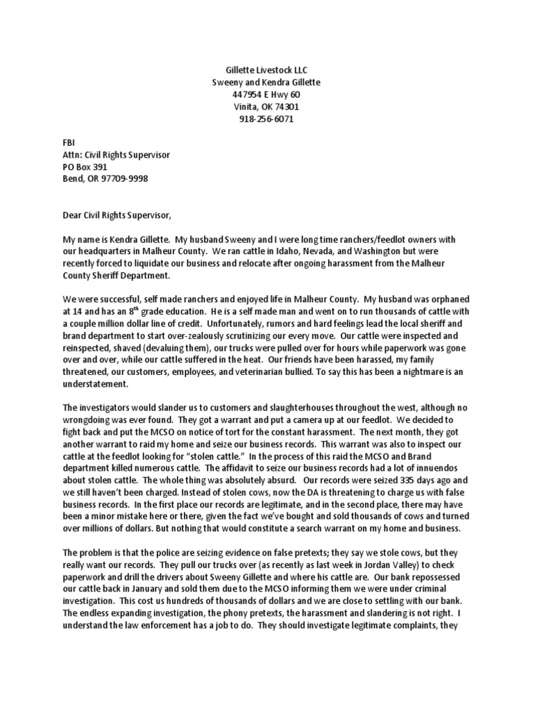 recently forced to liquidate our business and relocate after ongoing harassment from the Malheur