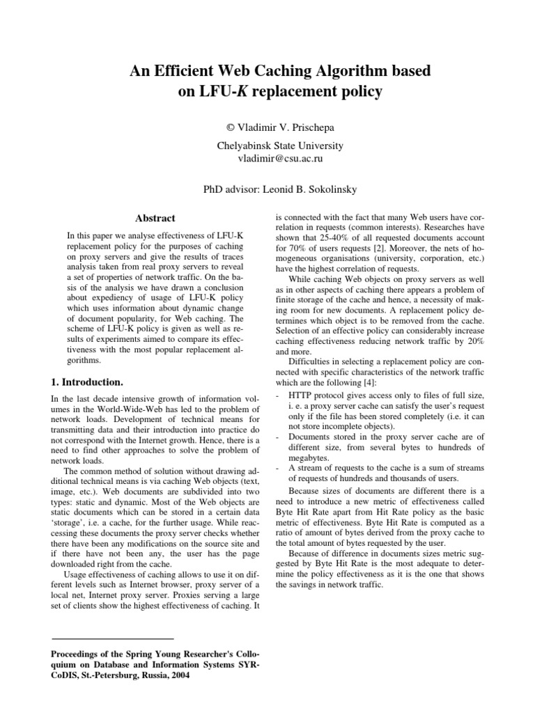 of document popularity, for Web caching. The termines which object is to be removed from the cache.