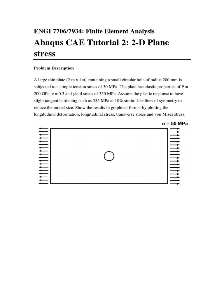 subjected to a simple tension stress of 50 MPa. The plate has elastic properties of E =