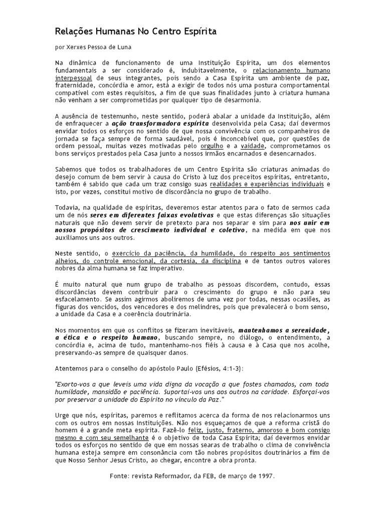 Relaes Humanas No Centro Esprita