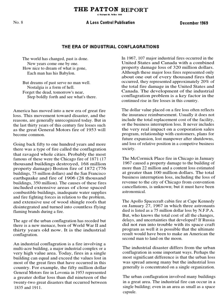 The world has changed, past is done. In 1967, 107 major industrial fires occurred in the