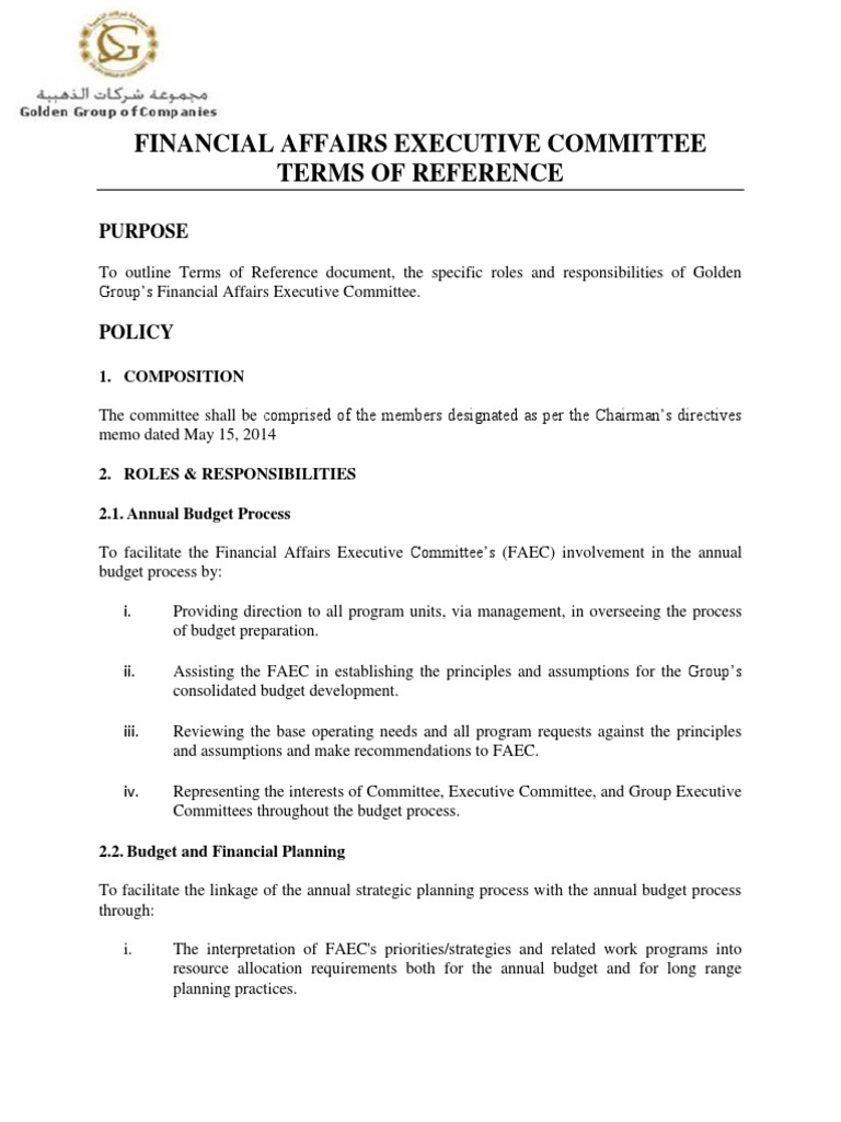Groups Financial Affairs Executive Committee.