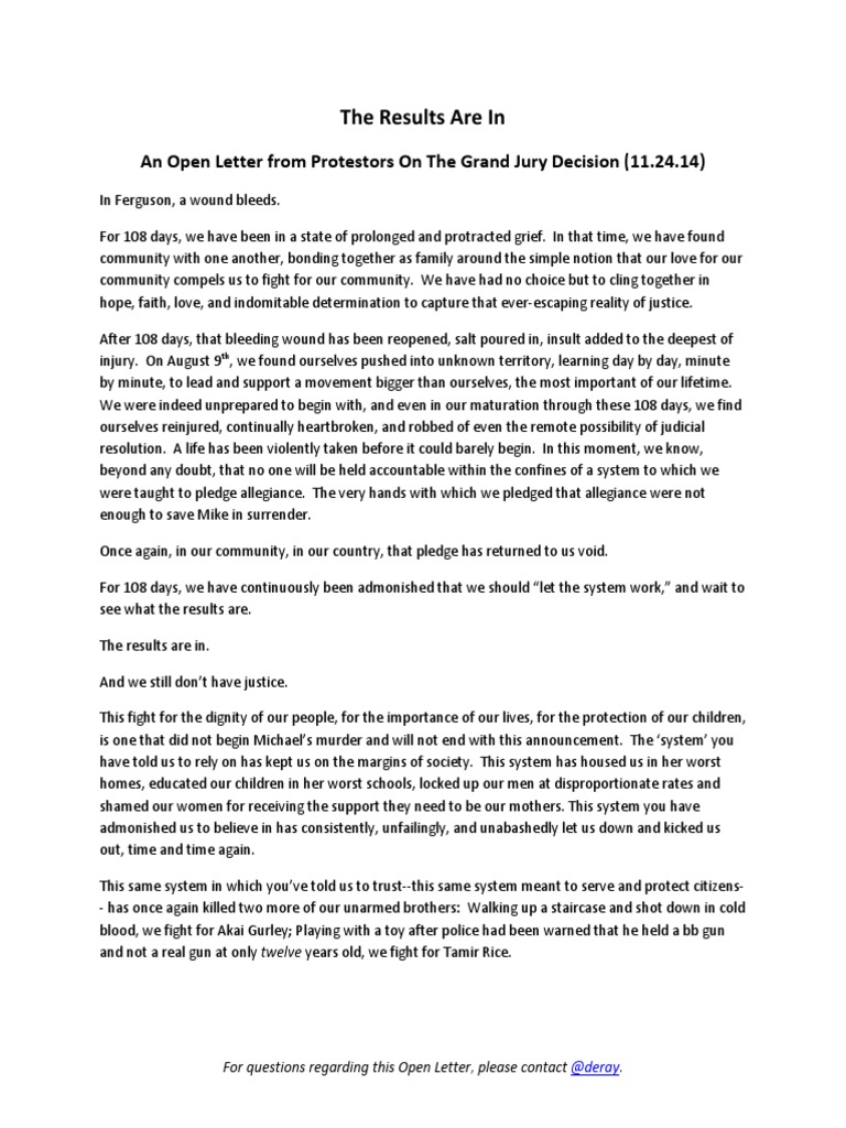 An Open Letter from Protestors On The Grand Jury Decision (11.24.14)