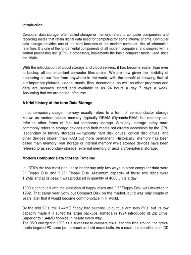 Modern Computer Data Storage Timeline