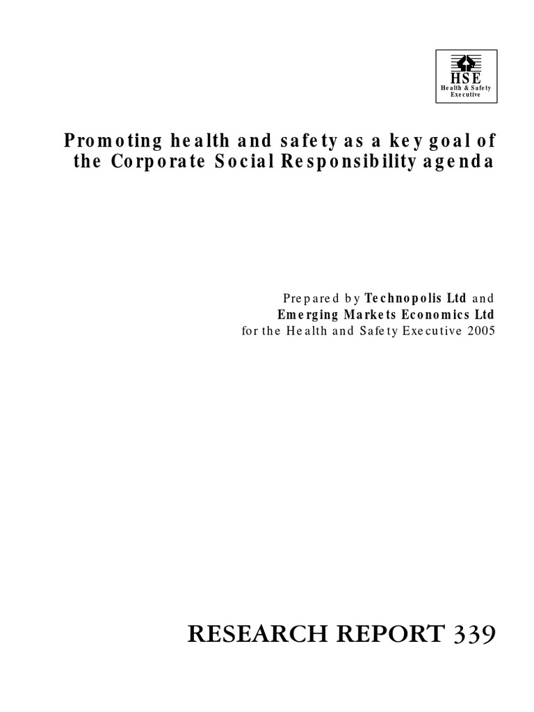 Research Report 339: Promoting Health and Safety As A Key Goal of The Corporate Social Responsibility Agenda