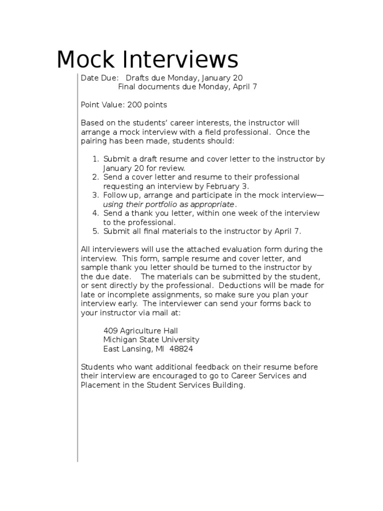 Cover Letter & Resume (Note: 1 = low and 5 = high)