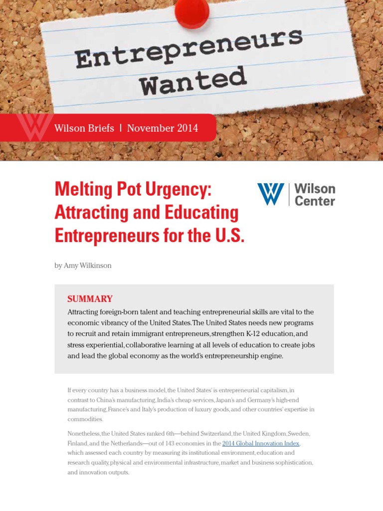 Melting Pot Urgency: Attracting and Educating Entrepreneurs for the U.S.