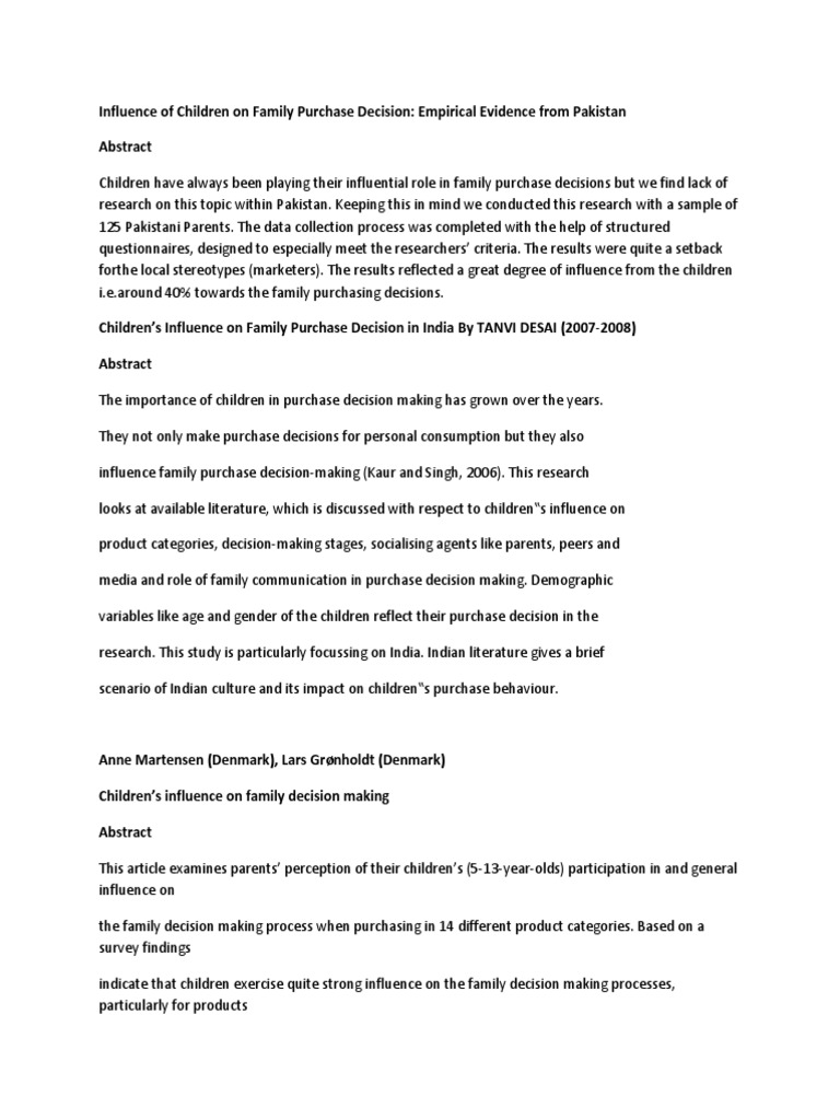 that children play in purchase decision making in families. Hence, the aim of this paper is not
