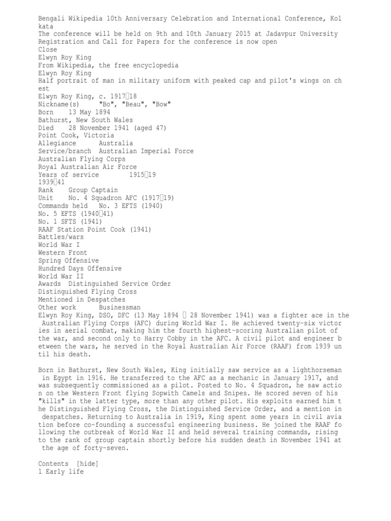 Jump up ^ "King, Elwyn Roy". Commonwealth War Graves Commission. Retrieved 4 Jan