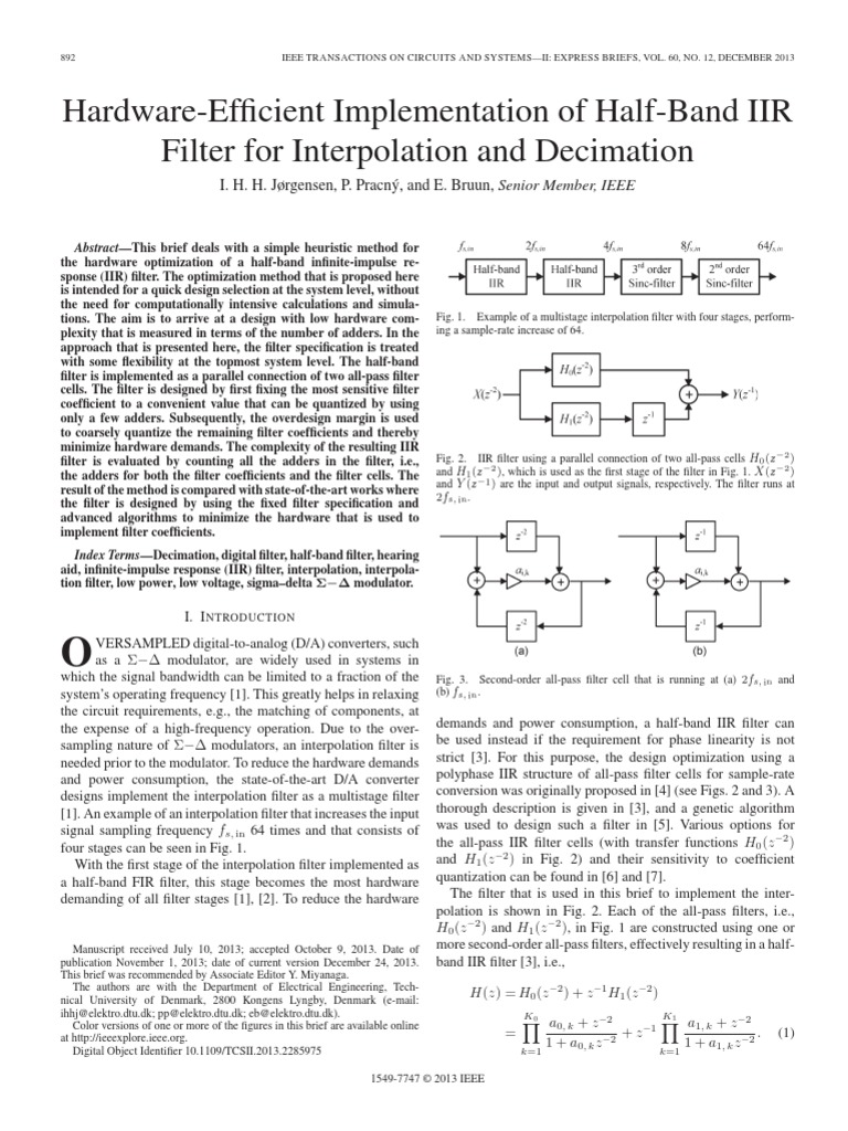 the hardware optimization of a half-band infinite-impulse response (IIR) filter. The optimization method that is proposed here