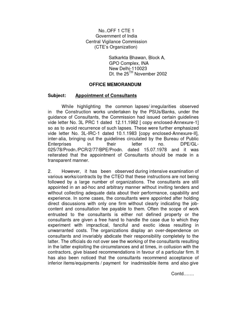 direct discussions with only one firm without clearly indicating the jobcontent and consultation fee payable to them. Often the scope of work