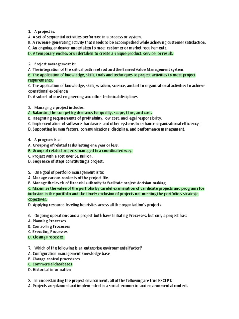 8. In understanding the project environment, all of the following are true EXCEPT: