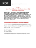 On page 2, under the "Where to File or Fax" table, the address and FaxTIN number have changed. If you are applying for an Employer