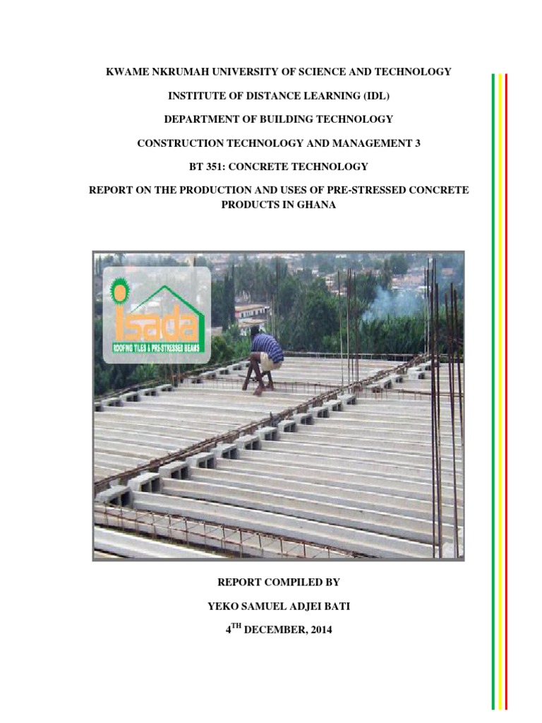 Pre-stressed concrete products, especially, pre-stressed beams for floor slabs are the widely used prestressed product in Ghana. Its acceptance and use is still on the low as most contractors are still