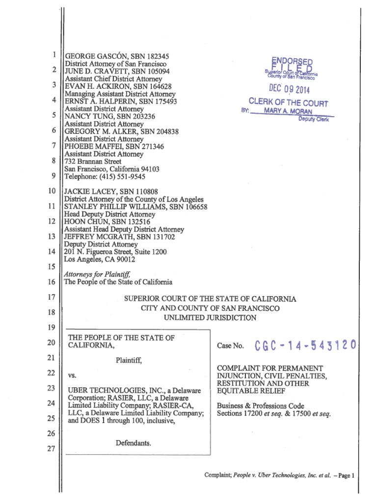 ‘Complaint; People v. Uber Technologies, Inc. et al. ~ Page 1eC araueun