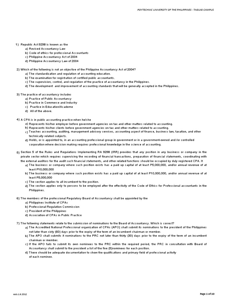 d) Philippine Accountancy Law of 2004
