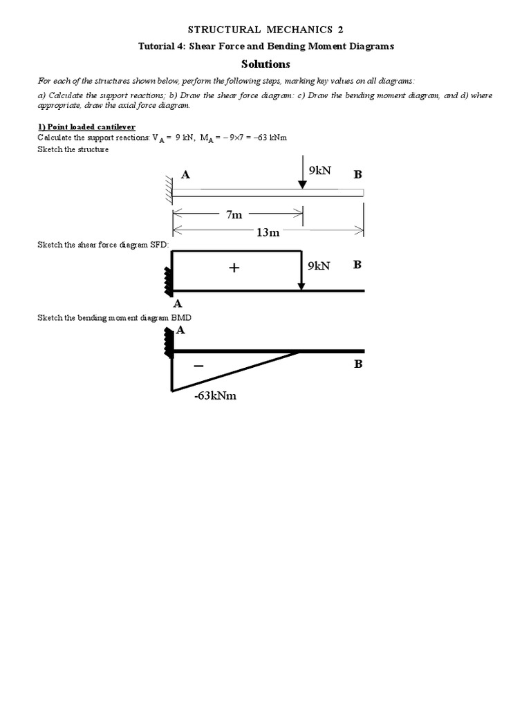 Tutorial 4: Shear Force and Bending Moment Diagrams