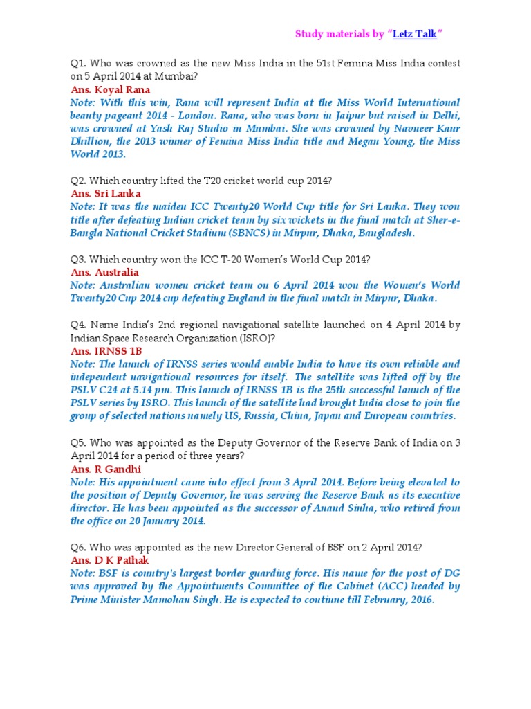 Q4. Name Indias 2nd regional navigational satellite launched on 4 April 2014 by