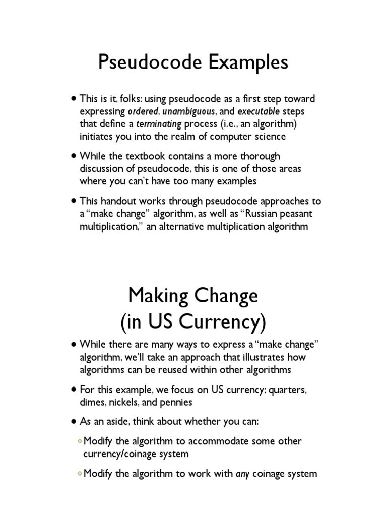 This handout works through pseudocode approaches to