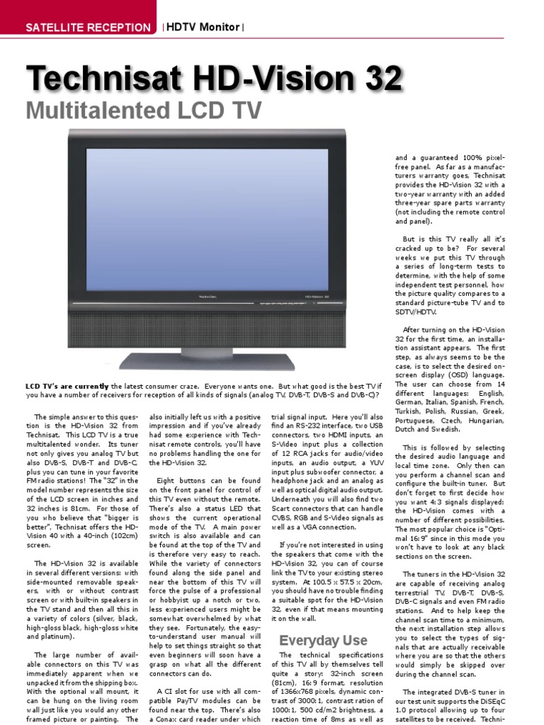 in several different versions: with found along the side panel and link the TV to your existing stereo The tuners in the HD-Vision 32