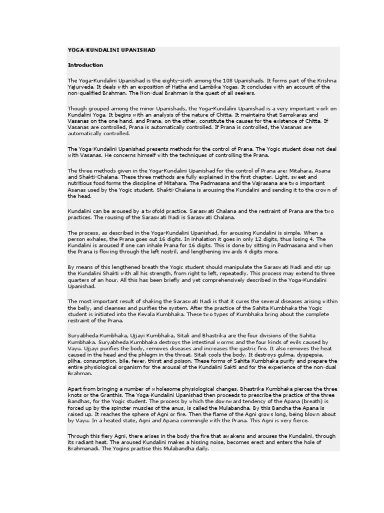 deliberation. Further on, the Upanishads describe the process and the manner by which the Kundalini is