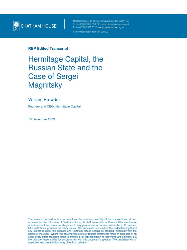 REP Roundtable Summary: Hermitage Capital, the Russian State, and the Case of Sergei Magnitsky