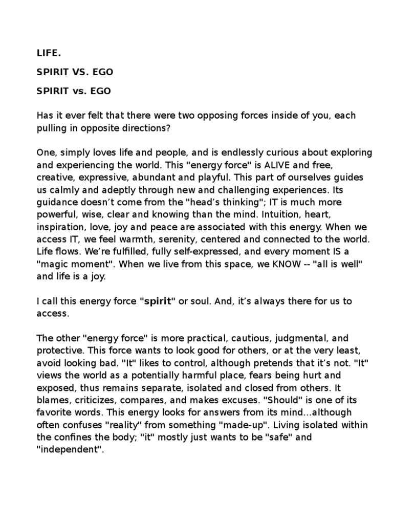 SPIRIT VS. EGO