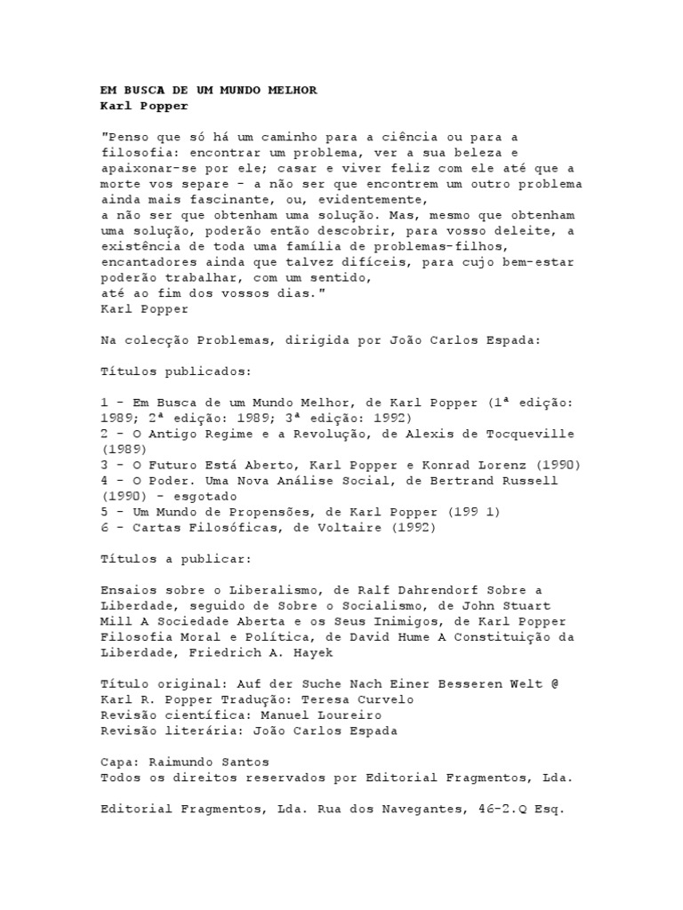 1 - Em Busca de um Mundo Melhor, de Karl Popper (1ª edição: