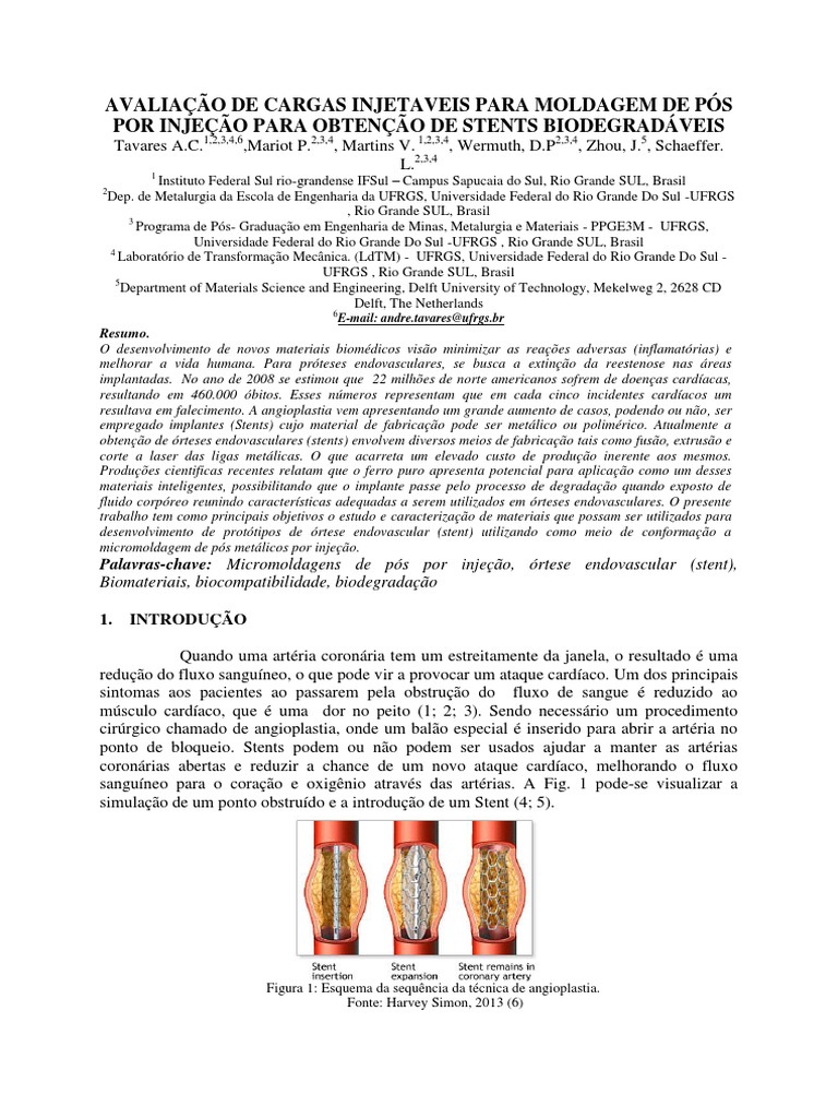 Keywords: Micromoldagens post injection, endovascular stent (stent), Biomaterials,
