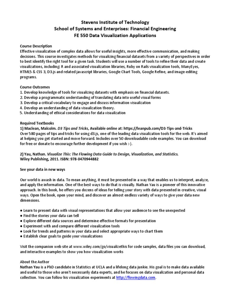 2) Yau, Nathan. Visualize This: The Flowing Data Guide to Design, Visualization, and Statistics.