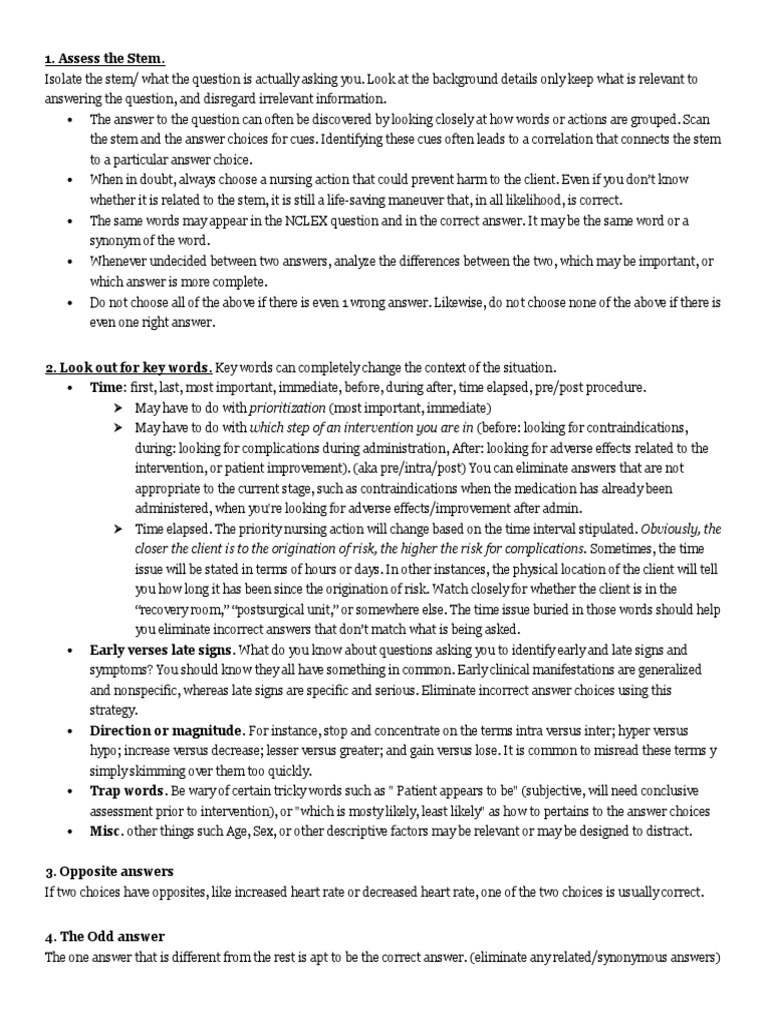 the stem and the answer choices for cues. Identifying these cues often leads to a correlation that connects the stem